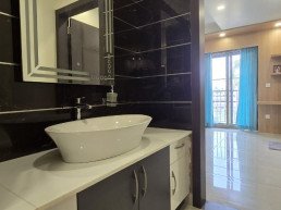 The apartment is crafted with Premium vitrified tiles throughout the entire living space, providing a sleek and modern aesthetic. For the bathrooms, ceramic tiles are used, offering both practicality and elegance.